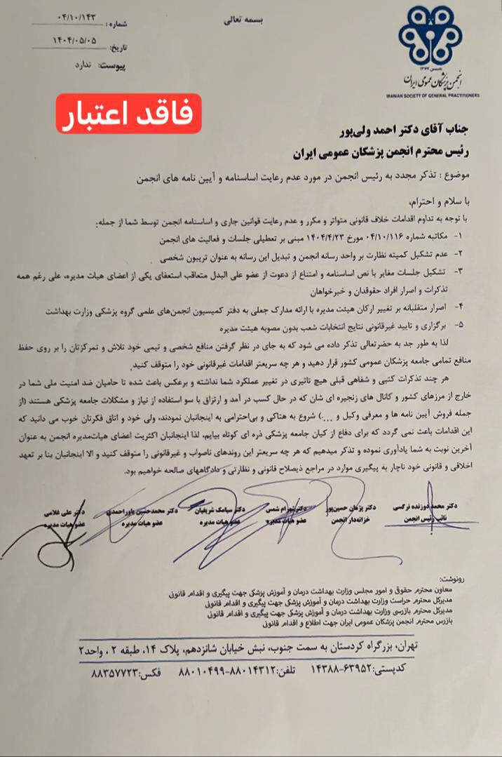 همچنین، برخی از اسامی ذکرشده در ذیل آن، در حال حاضر عضو رسمی و حقوقی هیأتمدیره محسوب نمیشوند.