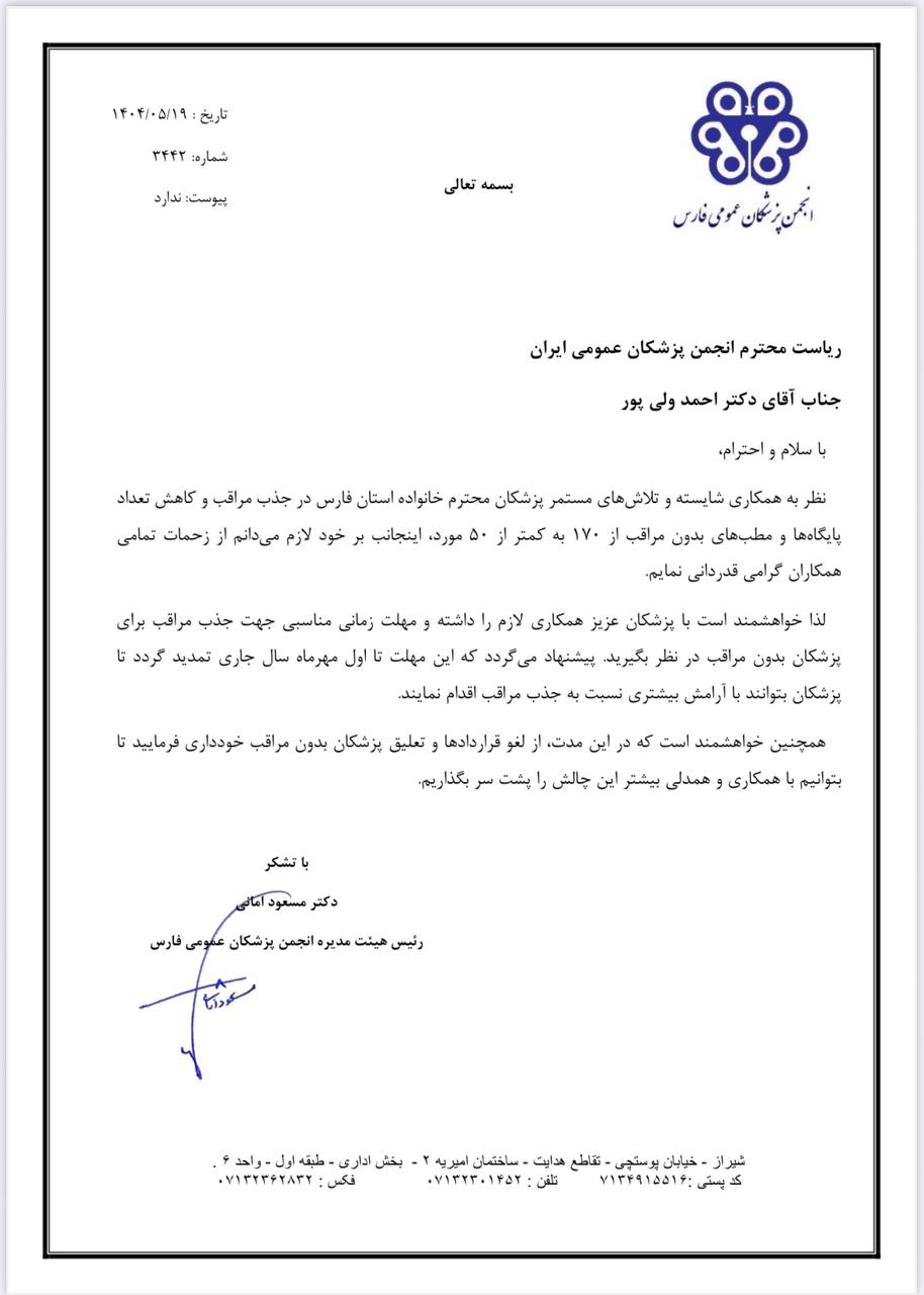 امید است پیرو درخواست قبلی انجمن با تفکیک حقوق مراقبین از پرداختی به پزشکان، این فرآیند به صورت پایدار تسهیل گردد.