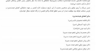 اعضای هیأترئیسه و خزانهدار انجمن پزشکان عمومی استان مرکزی بدین صورت انتخاب شدند: رییس انجمن: دکتر فروغ نجفی نایب رییس انجمن: دکتر فاطمه محمودی دبیر انجمن: دکتر داوود کمیجانی خزانهدار انجمن: دکتر امید عزتی بدین وسیله و با صدور حکم ریاست دکتر فروغ نجفی، هیأتمدیره منتخب انجمن پزشکان عمومی استان مرکزی به صورت رسمی و با ترکیب جدید شروع به …
